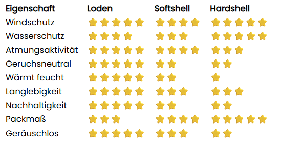 Loden vs. Softshell vs. Hardshell: Der Vergleich